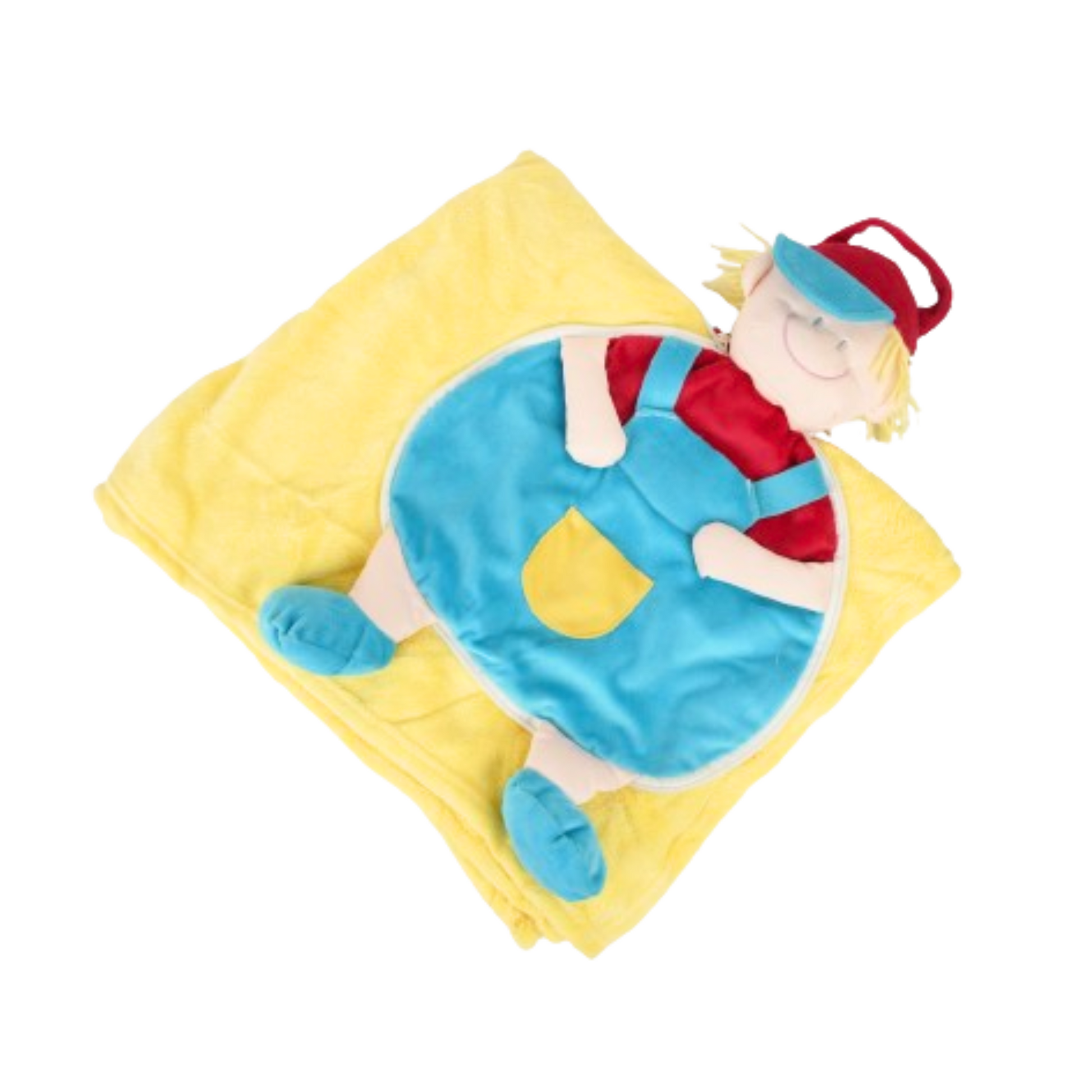 Puntoon Kids Soft Toy Blanket Boy is the perfect 3-in-1 kids blanket, pillow, and soft toy buddy to play with. This lovely design combines the warmth of a blanket, the warmth of a pillow, and the companionship of a soft toy blanket doll, making it an essential item for any child's playtime and naptime. Our doll blanket for girls is made with the highest care and attention to detail, featuring a velvety pillow with a warm blanket tucked neatly inside. Simply unzip the toy to reveal the tucked blanket, ready to cocoon your child in a world of warmth and security. Our toy blanket, with its colorful patterns and brilliant colors, will captivate the imaginations of girls. Whether they're taking a nap, cuddling with their favorite soft toy, or going on imaginary adventures, this versatile accessory will quickly become their new best friend. Not just a toy or a blanket, but a cherished friend for your children's daily interactions. Experience the lovely design of the Puntoon Kids Toy Blanket today!