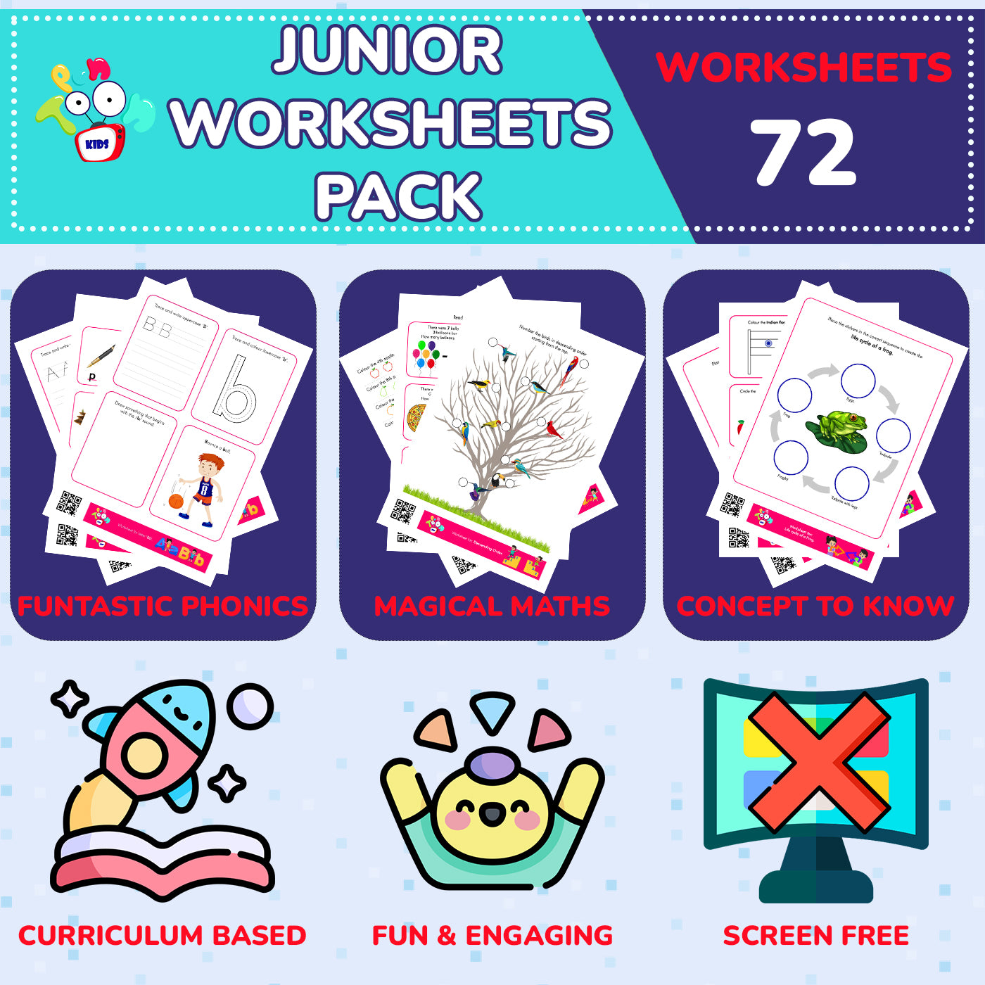 Make early learning joyful with PunToon Kids Junior Worksheets, thoughtfully designed for children aged 4 to 5. These worksheets spark curiosity and build core skills like letter sounds, number recognition, drawing, and basic concepts. Each activity is crafted to improve pen control, focus, and classroom readiness while keeping kids engaged through playful practice. Perfect for preschool prep, revision, or daily learning, these worksheets support early literacy, math, and creative thinking. Whether used at home or in the classroom, they offer a fun, effective way to help your child grow with confidence and enjoy the learning journey.
